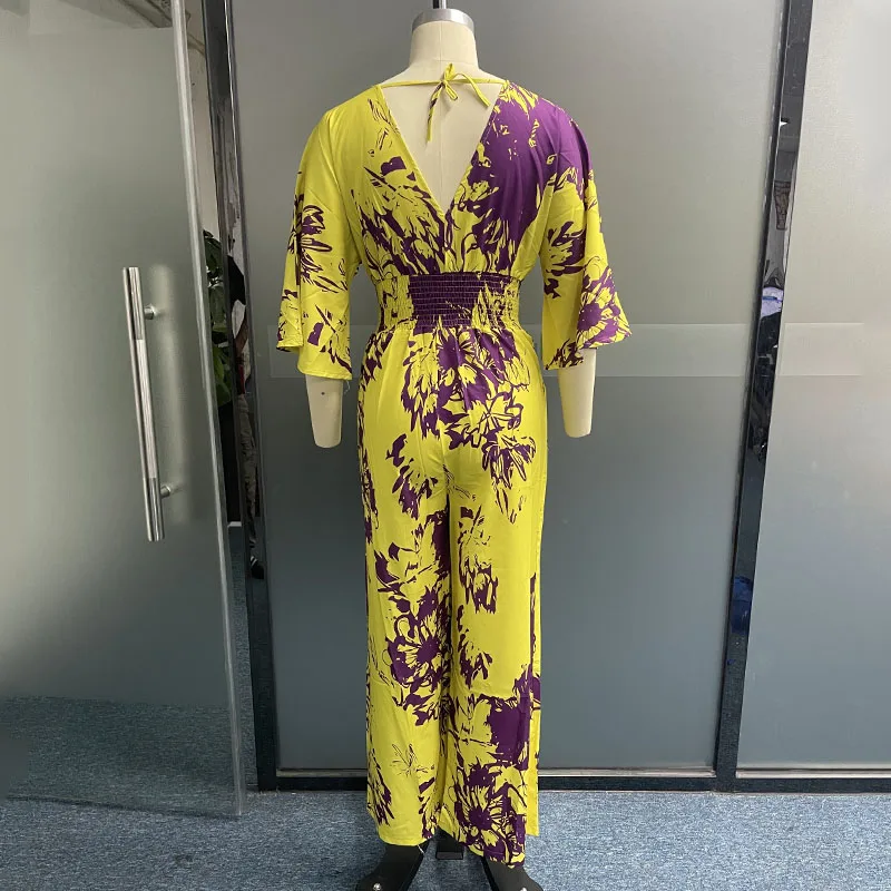 Womens Jumpsuit – Summer Short, Bat Sleeve, V Neck Backless, Nipped Waist, Loose Wide Legs, Casual Pants Romper, High Streetwear